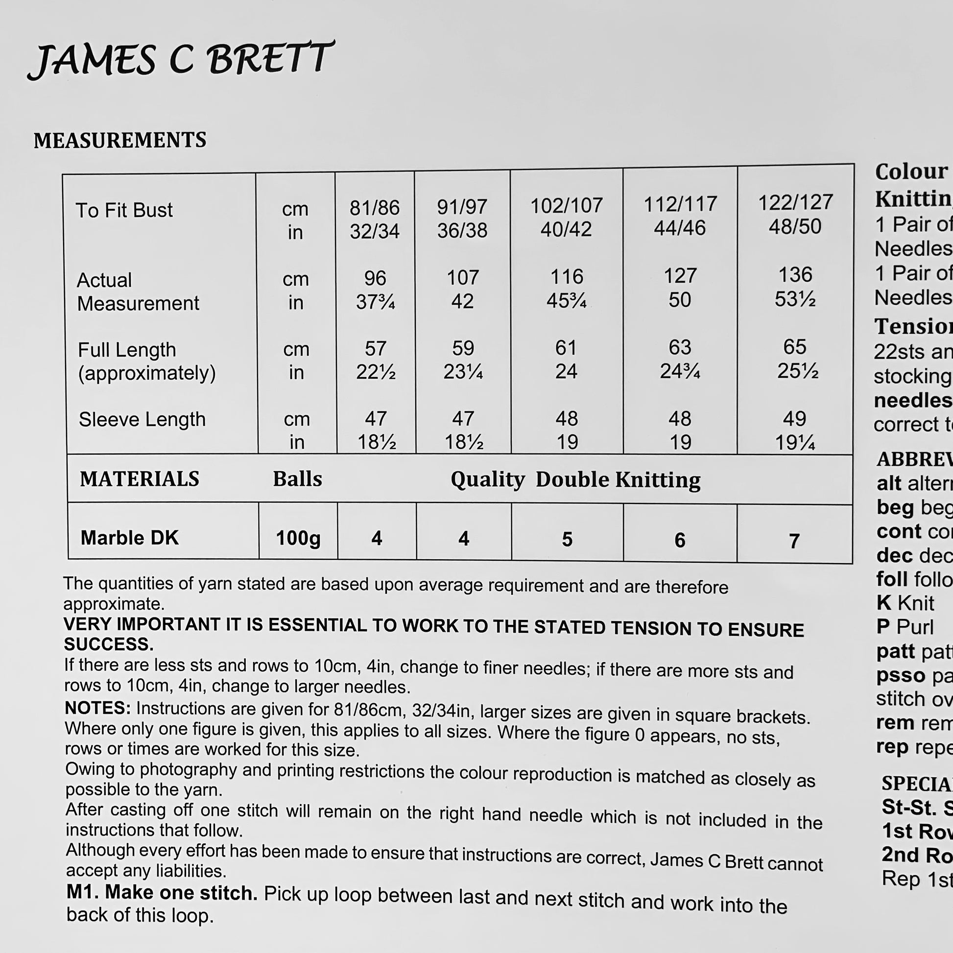 This intermediate-level knitting pattern is designed for adults and uses DK weight yarn, offering a balanced challenge for experienced knitters. Sized from 81/86cm to 122/127cm (32/34in to 48/50in), it provides